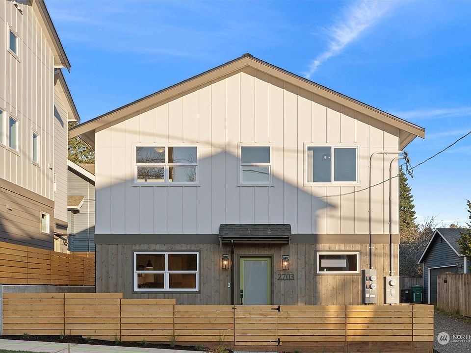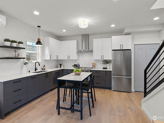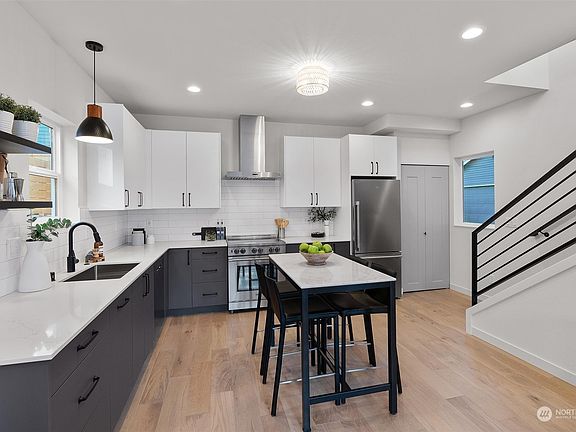 All New Craftsmen home by Quality builder in nice Bryant area. Short walk to Coffee, Brewery, Restaurants, U -village & Burke Gilman trail, Home features gourmet kitchen w/Beko stainless appliances ,custom Belmont cabinets, pantry ,Spacious living & dining with wide plank hardwood floors, Extra tall ceilings, Powder room with designer tile & lighting, Custom black steel handrails, 2nd floor with 2 bedrooms, full tile bath & walk-in laundry room, spacious master bedroom w/ two large closets, Elegant bath with large tile shower, double vanity, quartz counters & nice lighting, fenced front & side yards for pet, Large 1 car garage, Exterior feature quality Cedar siding on lower level & hardie plank, mini splits for heating & cooling.