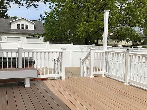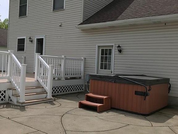 Summer is calling --- enjoy the evening hours in your hot tub in the enclosed cement patio. Prepare the barbeque on the newer modern Trek Deck. Take the chill out of the air w the Fireplace in the 17 x 13 Living Room. You will find many closets in this 3 bed 2.5 bath 2 story. Freshly painted interior. Full Basement for future family room. Updated new custom kitchen w granite counters and S Steel appliances. Convenient first floor laundry. Deep 2 car attached garage. Central AC