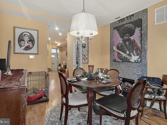 Charm and character with all the right modern touches! Stained glass windows, exposed brick, electric fireplace enclosed in a granite wall, and a bright skylight set this 3 bed/2.5 bath home apart! Entertain and relax in the spacious lower-level REC ROOM. The upper level features a large primary bedroom with en suite, two large additional bedrooms, and a full bath with WHIRLPOOL TUB. Natural and recessed lighting throughout, LAUNDRY/STORAGE ROOM with built in shelving, and a PRIVATE REAR PATIO WITH PARKING complete this amazing offering! Convenient location close to major commuter routes, the Maryland Zoo, and historic Druid Hill Park, and just minutes from Reservoir Hill, Penn North, and MICA.