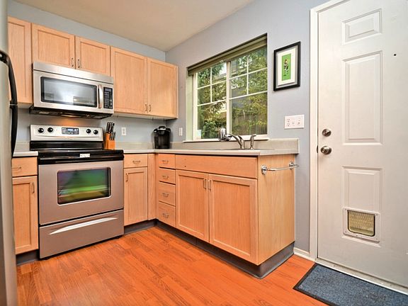 Darling two story, free standing single family home (no HOA dues) and a fenced, private backyard. Covered front porch, the home is set back off the street for ultimate privacy. Newer floors on main, kitchen with newer SS appliances and a pantry area. Upstairs the front bedroom has a lovely city skyline view. Laundry area conveniently located outside bedrooms. Great condo alternative. Close to Link Light Rail.