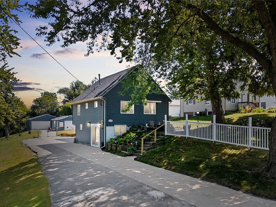 Don’t miss this updated home with a new primary suite in the lower level, plus 3 more bedrooms. This home has 2 bedrooms, full bath, formal dining room as well as an eat-in kitchen, family room, and sunroom. Upper level is a finished loft with a half bath. Lower level includes the newly finished primary bedroom suite, extra room for office or nonconforming bedroom, and another family room area, with plenty of storage. This property includes plenty of garage space with a newer 3 stall garage, another 1 stall heated garage and attached shed on house for more storage. Enjoy the fenced in large fenced in yard, with the deck and patio. Updates include newer new windows, siding, and gutters. All appliances stay. Swing set stays. Quiet neighborhood and close to restaurants, shopping, schools and I380. Updaters: 2025- New electrical box, new carpet in 2 bedrooms, remodel of kitchen; 2023- new water heater; 2022- all new windows, new siding, new furnace mother board & igniter; 2020-new roof, new front door, new primary bedroom in lower level, remodeled main floor bathroom. Buyer must verify SF and other data.