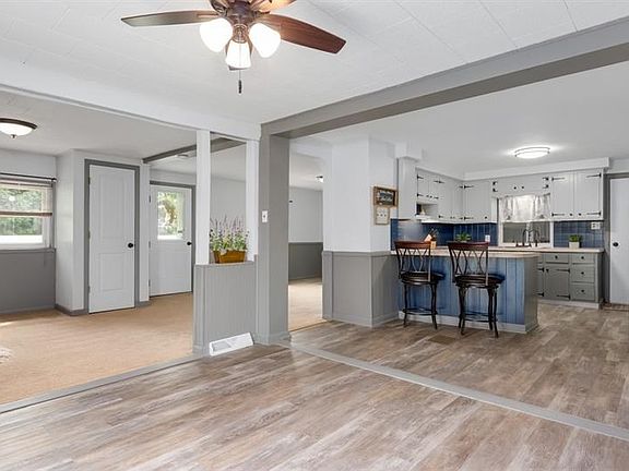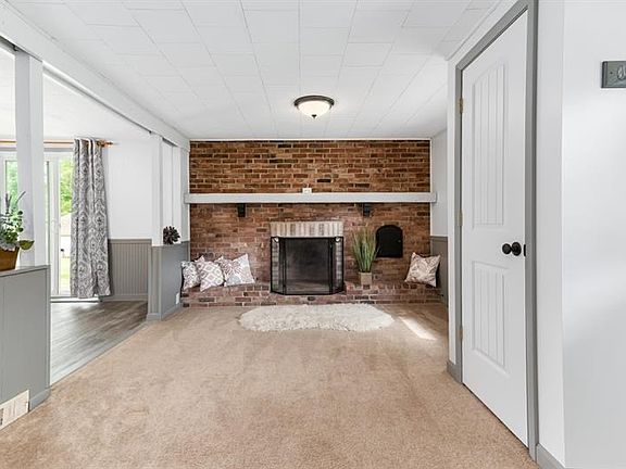 One Level Living! This adorably updated two-bedroom ranch will give you good vibes with an open concept and beautiful lot! The open living room, dining room, and kitchen combination make it a breeze to live, work and entertain in this space. The wood-burning fireplace brings a cozy warmth to the indoor areas, while a private side and back patio brings the outdoors in! Imagine a coffee or drink while looking out over a beautiful farm field, watching the deer and rabbits enjoy the yard. The kitchen is sharp and includes plenty of counter space and breakfast bar. The full bathroom has been updated and the two bedrooms have plenty of room for large beds and furniture. The attached two-car garage is the full depth of the house and makes the "man or woman" cave even better with patio access. The basement is clean and provides handy storage space. This home is within 45 minutes of Pittsburg International Airport.