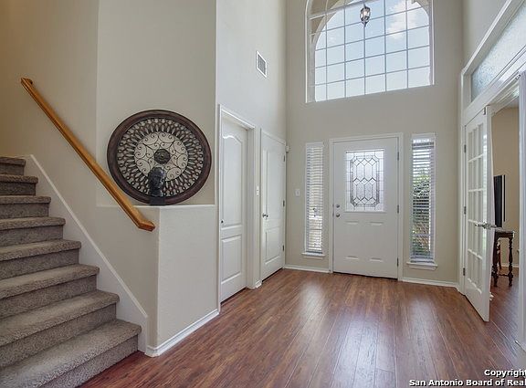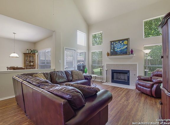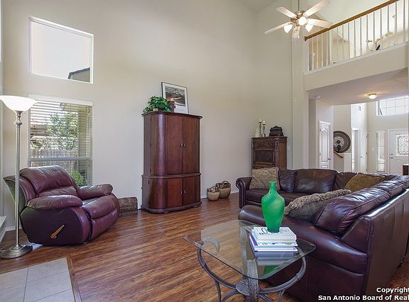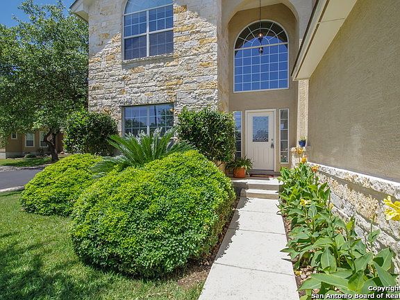 Beautiful Move-in Ready 4 Bedroom/2.5 Bath + GameRoom Stone & Stucco Woodside home in Popular Gated Trinity Oaks. Spacious Master Bedroom Down boasts bay windows, double vanities, garden tub/separate shower, & HUGE walk-in closet. Soaring ceilings. New paint. Recent flooring throughout: laminate downstairs & plush carpet upstairs. Formal dining down enclosed & could be bedroom,study,dining, etc. Private corner lot w/ trees! Acclaimed Comal ISD. Pool & Park. No city taxes.