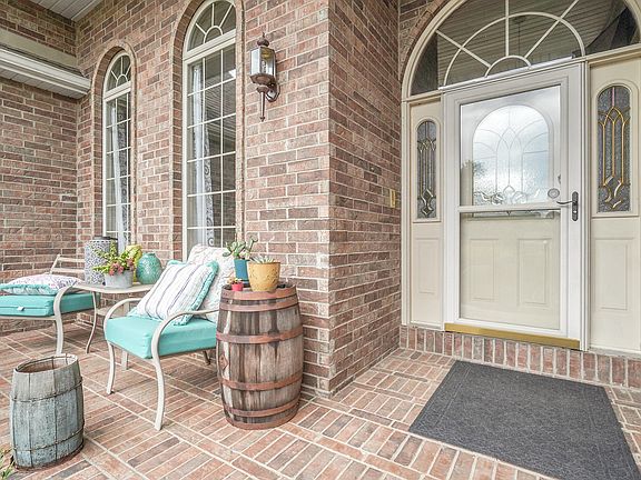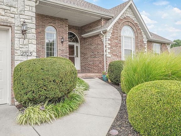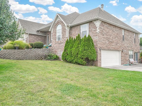 Look no further for a wonderful all brick walkout home with 5 car garage! The 3 car garage is on the main level and the other 2 car garage IS accessed from the corner driveway walkout basement. Enjoy the covered brick front porch to greet your guests. The floor plan is open and inviting and includes 2 living areas on the main floor. The great room has a tray ceiling and the cozy hearth room has a fireplace and built-in bookcases. The formal dining is enhanced with double arched windows. The spacious kitchen includes lovely cabinetry, a center island, stainless appliances with a gas cooktop plus solid surface countertops. You are sure to enjoy the very spacious master suite with a fireplace, sitting area and large bath. Two additional bedrooms are on the main floor plus a full and half bath. The lower level offers a large recreation area with a wet bar and gas fireplace. Additional bedrooms or office (no window) plus a full bath and storm shelter complete the lower level. This lovely home is in Ozark Heights with a neighborhood pool, tennis and children's play area. The fenced backyard includes a patio with an Ivy covered trellis.