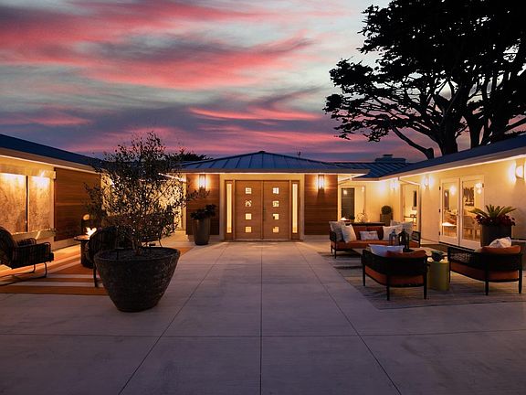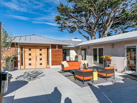 Amazing Ribera Beach location. Explore Carmel Meadows trails or spend the day at the beach. Through the gates is a sunny, private courtyard ideal for outdoor gatherings with firepits, an outdoor pizza oven, back lit wall fountain, dining area and seamless indoor/outdoor living. Entertain around the 10 ft. Quartz kitchen island with 48" Wolf range. Offering Sub-Zero side by side refrigerator and 86 bottle wine refrigerator with 2 beverage drawer and Wolf convection steam oven. Imported 9" Belgian Oak hardwood floors throughout this single level home. All the amenities one could desire. Don't miss the Princeton 6 person barrel sauna off the master suite! Classy, updated, current coastal vibe located in one of the most sought after neighborhoods on the Peninsula. Less than 5 min from Carmel shops, restaurants and other conveniences. Watch sunsets every night from this very special property.