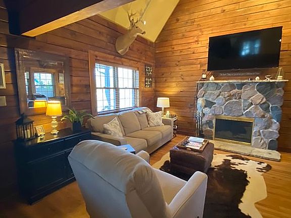 Custom 3 bedroom, 2.5 bath log cabin. Covered front porch as well as a back porch. Whole house gas generator. Fully landscaped yard.