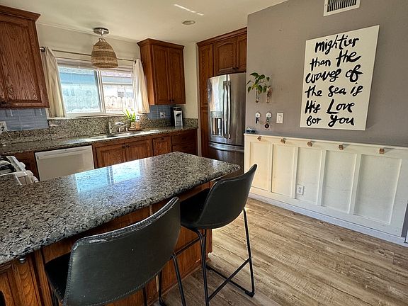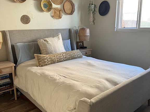 Clean duplex unit B good fenced yard, recently remodeled kitchen with built-in applicances. Laminate flooring throughout.Central Air Conditioning and heat. Laundry in one car garage with attic storage, Close to shopping and two parks. Elementary K-5 school five blocks away. Great family living in the front unit.!! Owner pays water,sewer,trash, and gardener fenced backyard yard for dogs. Single garage with overhead for laundry with electric roll up door.lament flooring throughout. No vicious dogs! Tenant pays electric, gas,cable TV internet.