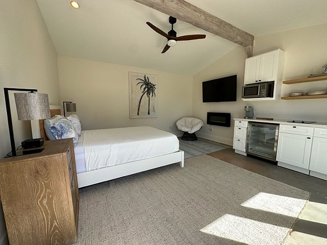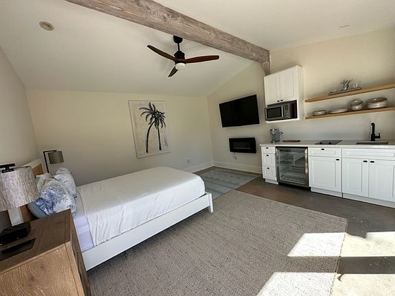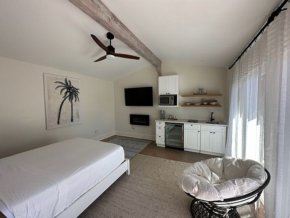 Welcome to the Coastal Beach living. This inviting detached studio has beautiful landscaping that will put you into a peaceful mindset! It features more than what you can imagine. Start with the view of the enticing pool with a jacuzzi that is just waiting for your enjoyment, plus an outdoor shower, to add to the fun there is a covered common outdoor living entertainment area for those relaxing moments, it also sports a beautifully designed new Kitchenette with a stovetop, sink, refrigerator, microwave, and air fryer, the spacious bathroom has a walk-in shower, and there is a cozy electric fireplace to keep you warm. The amenities do not stop there. The location offers a short distance to Pines Park, local beaches, bike trails, delicious restaurants, and several favorite stores. This is an absolute gem, for sure! The Housing provider pays, for water, gas, and electricity. The Housing provider pays, for water, gas, and electricity. 6 Months to a Year Lease.