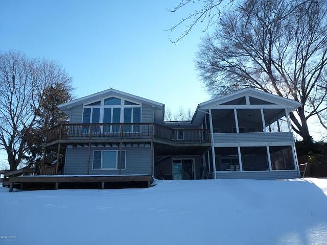 Great Lake Home on All Sports Omena Lake with 115' of sandy beach & long lake views. Omena is a glacial spring fed lake 160 acres in size. This ranch walkout features 3055 SF of living space on 2 levels, 3 BR & 3 F/baths. The main level is open concept with hardwood or ceramic, large kitchen, dining & great room lakeside, BR 2 & 3 & an office area. The lower level is all brand new with a large master suite, heated floors in the master bath, third full bath & a too die for family room/wet bar W/granite & island lakeside. Outside you will find everything set up for lake living. 14x18 screened in porches on both levels, deck systems both levels, newer vinyl sea wall with a full length exposed aggregate 5' walk, a nice fire ring in the large lakeside yard, 2 car garage with plenty of parking.