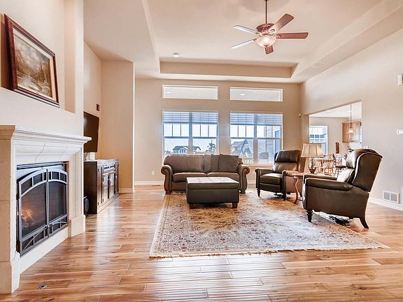 Blackstone Country Club Ranch on 3rd Green & Lake! Loaded! Professional landscaping & water feature, Acacia hardwood floors & custom window coverings. Gourmet kitchen w/slab granite & endless counter space. Great room w/elegant hardwood floors, gas fireplace, surround sound, beautiful coffered ceiling & commanding views of the golf course! Secluded master suite boasts a large 5 piece bath w/adjoining walk-in & custom closet system. 3 car garage w/epoxy floor & southern exposure to melt winter snow! Enormous walkout basement!