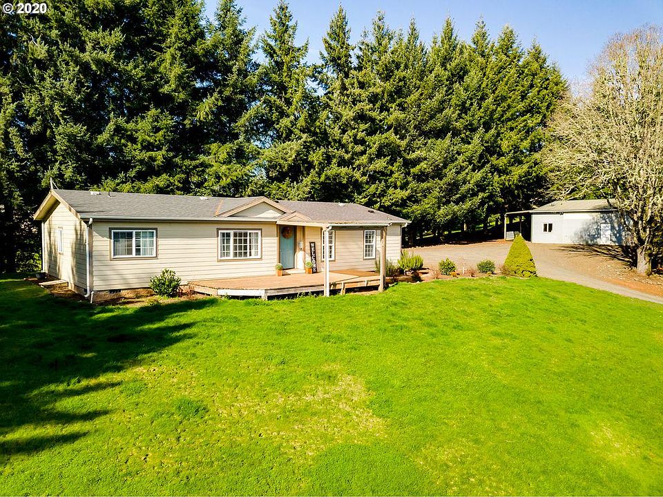 Amazing views! Just under 5 acres in a desirable location. Well maintained home with updates. Plank flooring is LVP. Great room floor plan with separate living room space. Kitchen is open to family room and eating area with new range and dishwasher, updated refrigerator. Master has bath and double closets. Shop is a 30x36 with an RV lean-to and an additional lean to on the other side. Underground sprinklers, deck with valley views and covered back patio.