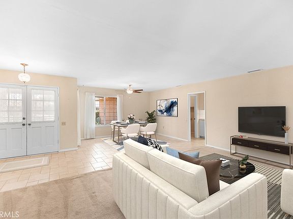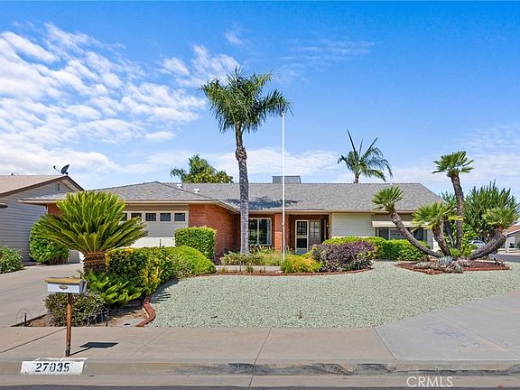 Do you love your vintage car, hobbies, larger projects or just being in the garden? Do you need a 2-car garage, plus a workshop area, a she-shed or a detached 3rd car garage? Are you thinking about adding an ADU for a relative or extra income? Do you need a place to host your side business? Would you like to live on a corner lot in a quiet, Senior 55+ community (SCCA), with great neighbors, but still close to everything? Then you must see this lovely, 1,705 sq ft 2 bedroom 2 bath home in Menifee/Sun City! This property has great curb appeal, low taxes & a low annual HOA! Walk through the double entry doors to see a large living room & views to the backyard. The kitchen is Open Concept to the family room (with wood-burning fireplace) & features a stainless steel refrigerator, breakfast bar counter and is located very close to the laundry & the formal dining area. The Primary bedroom is oversized with mirrored closet doors, a ceiling fan/light combo & a en suite full bathroom. The second bathroom features a shower & the same ceramic tile flooring as the primary. The guest bedroom features a huge closet, & could also be used as an Office. There are 3 sliders to the enclosed lanai, & 2 out to the huge, covered patio. The home features laminate, tile & carpet flooring. Most of the windows in this home are dual pane , & many are vinyl. The garden-like back yard includes planters, shrubs, a small area for a lawn & even a pond with waterfall where you can raise gold fish or koi! Close to dining, shopping, banks, churches, several hospitals & the SCCA Recreation facilities, which include swimming pools, spa, gym, lawn bowling, horseshoes, pickleball, shuffleboard & many clubs & activities at only $435 per year! Drive your golf cart in minutes to several grocery stores, restaurants, medical offices or the expanding Menifee Town Center! The I215 freeway is only 7 minutes away, & the I15 freeway is about 10 miles. Come see today before this one gets away!
