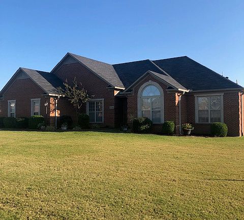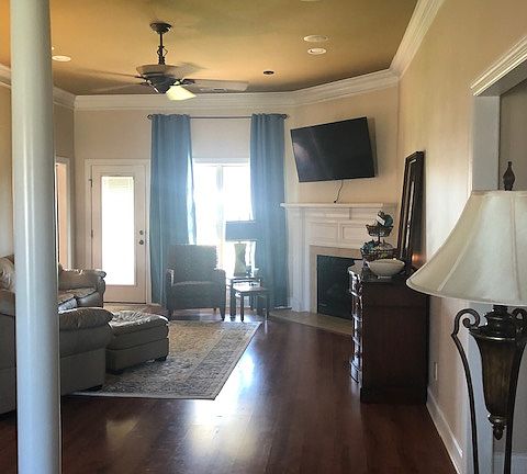 Ranch home with 4 bedrooms and 3 baths. An open floor plan features 10-foot ceilings in the great room and dining room with extra crown molding. The home has new paint throughout and new carpet. The master bedroom has a trey ceiling with indirect lighting. The home features recessed lighting throughout. The kitchen, great room, dining room, hallway have laminate flooring. The bathrooms have tile flooring with the master bath being heated. Many extra features include gas fireplace in Greatroom, tankless water heater, custom backsplash in kitchen, wired for a sound system, upgraded lighting inside and out, large corner lot, insulated garage door.