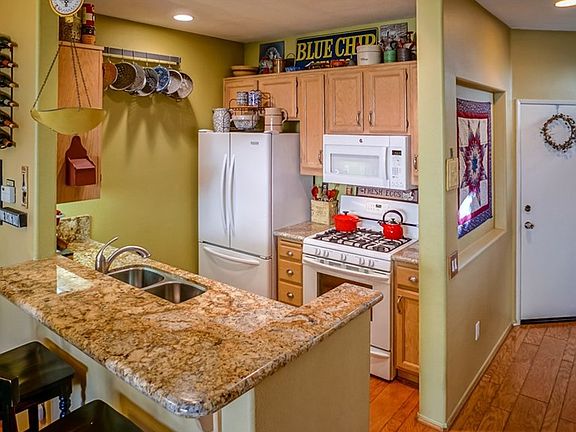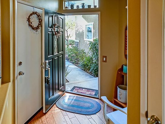 Adorable Townhome in the Montanas. 2 bedrooms with 2 bathrooms. Beautiful hardwood flooring throughout the first floor. Gorgeously remodeled kitchen with granite counters, breakfast bar dining and dining area. Cozy granite stone fireplace in the living room. Two spacious bedrooms , each with their own bathrooms upstairs. Main master bedroom has a double sink vanity and a walk-in shower as well as mirrored wardrobe and a ceiling fan. Secondary bedroom is generously sized and has a ceiling fan as well. Charming rear patio with tile and concrete and large planter. HOA offers sparkling pool, spa, and large greenbelt parks. There are many lovely trees and lush landscaping throughout the complex that adds to the tranquility of this beautiful townhome and space. Within walking distance to schools, parks, paseos, restaurants, grocery store, and much more.