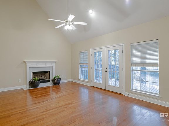 Exuding Southern Charm, this meticulously crafted 4-bedroom 2.5-bathroom home is nestled in the sought-after Creekwood Subdivision in heart of Daphne. A large, handsomely landscaped front yard welcomes you onto the expansive front patio. Upon entry, you are immediately greeted with soaring ceilings and hardwood floors sustained throughout the living areas. The generously sized primary suite is on the main level, offering an en-suite bathroom with cathedral ceilings, separate vanities, closets, and a soaking tub. Natural light cascades into the large living room, adorned with tall ceilings and a gas fireplace. The well-adorned kitchen features stainless appliances, a breakfast bar, and separate breakfast nook. Enjoy the expansive backyard, or lush wooded property from atop the wooden deck. Upstairs you will find 3 spacious bedrooms and separate newly updated hall bathroom. 1 bedroom has been thoughtfully converted into an office or craft room. Enjoy plenty of storage in the walk-in attic space. This home will not last long at this price. Call your favorite agent for a showing today. Buyer or buyer's agent to verify all pertinent information.