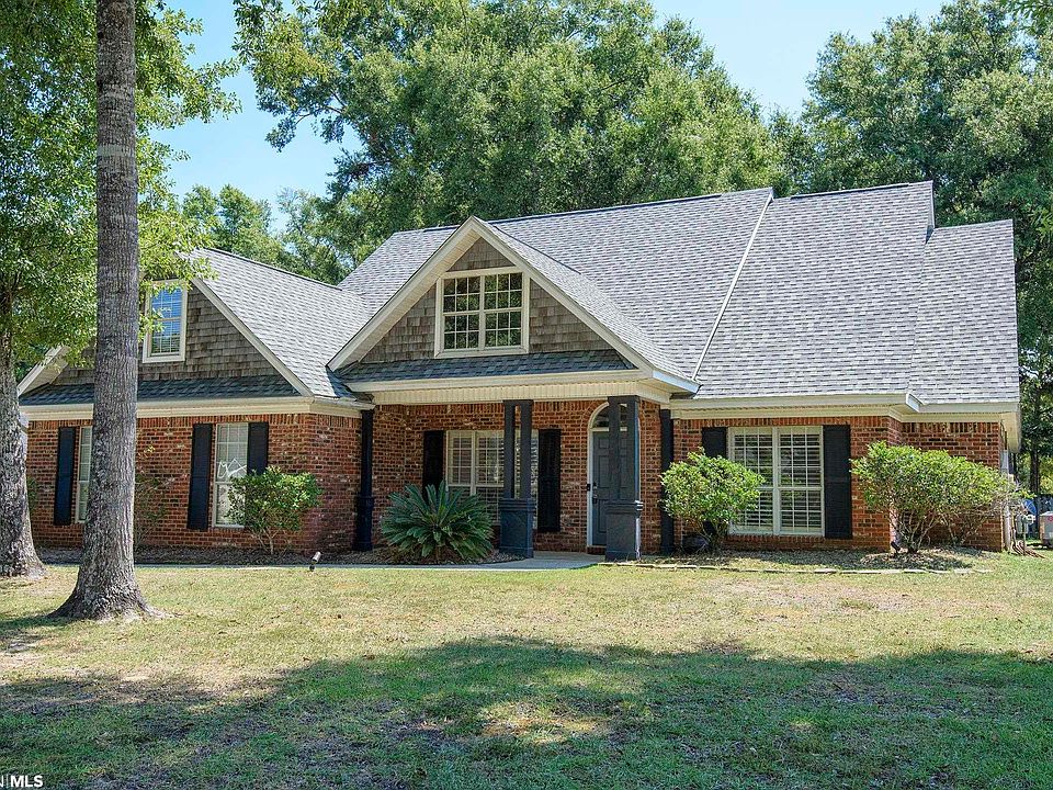 Coming Soon!! This beautiful custom home in the sought-after Creekside Subdivision in Daphne is the perfect spot to call home. The home comes with 4 bedrooms, 3 full baths as well as a large bonus room over the garage that is perfect for an office, home gym, or media room.. The split bedroom plan has 2 guest bedrooms along with the primary bedroom and en-suite bathroom and a separate guest bedroom with its own en-suite bathroom perfect for a teenager or as an in-law suite. There are numerous updates including: bronze fortified roof (2019), HVAC (2019), Tankless Water Heater, and a completely updated primary bathroom. You will find trey ceilings, two walk-in closets, a large walk-in shower, soaking tub, and two separate vanities in the primary suite. The kitchen is a chef's dream with custom cabinets, rustic wood shiplap breakfast bar, stainless steel appliances, granite counters, and a spacious eat-in area with bay windows overlooking the backyard.. The living room and the bedrooms are complemented with premium hardwood floors. Every inch of this home has a special touch with custom light fixtures, plantation shutters, nest thermostat, and high quality crown molding. You will fall in love with the oversized backyard that has a large, covered patio and fire pit that is the perfect spot for enjoying your morning coffee or entertaining friends and family.. Conveniently located, this house is only minutes from local schools, sport complexes, and shopping and dining.