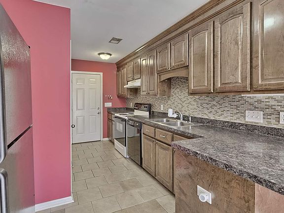 - Kitchen: Eat In, Pantry, Bay Window, Floors-Tile, Cabinets-Stained, Backsplash-Tiled