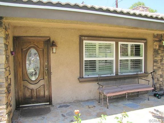 Beautiful One Story Home. Nice Curb Appeal with Lots of Palm Trees. Seller spent $$$ on upgrades. Turn Key Condition. Custom stained glass front door. Crown molding, recessed lighting, plantation shutters. Venetian Plaster on the walls. Stone flooring throughout. Remodeled Kitchen and Bathroom. Newer copper plumbing. Stainless appliances. Newer double pane windows. Newer doors. Newly Add-on Family Room with Permit. Side yard has some grass with possible RV access. Backyard has stone floor. Pool has been re-plastered. Detached 2 car garage has insulated garage door. To Show is To Sell.