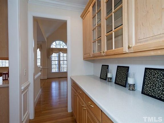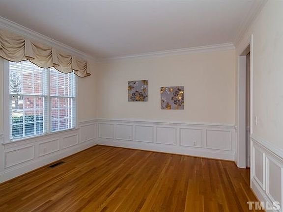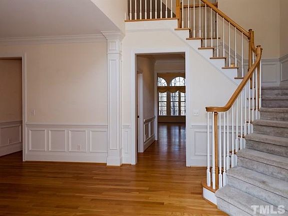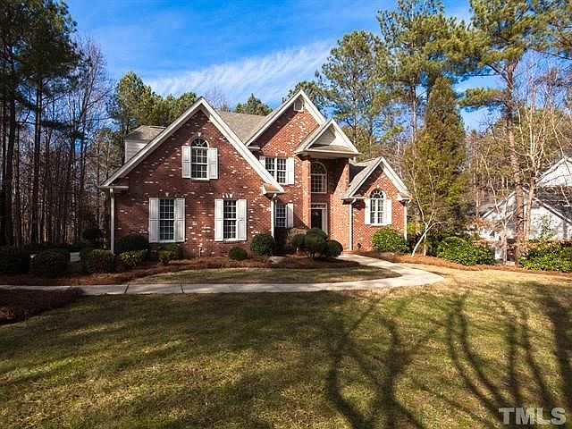 Beautiful Brick Home with Gleaming Hardwood Floors! Welcome to this beautiful brick home located in the Raleigh neighborhood of Whitehart! A curved walk-way and brick steps lead to the covered front porch. The two-story foyer greets you with warm hardwood floors and a winding staircase. The formal dining room is wrapped with crown and wainscoting. Next to the dining room is the Butler's Pantry perfect for entertaining guests. The two-story family room boasts a cathedral ceiling and features a marble-surround fireplace, a wall of windows, and a catwalk. Cooking is a delight in the spacious kitchen that offers tons of cabinets with under-mount lights, a tile backsplash, gas cook-top, and a breakfast bar. Enjoy your morning coffee in the breakfast area that also includes a French door to the deck. The open floor plan allows for easy entertaining. Relax in the peaceful sunroom while gazing out the two walls of windows. Sleep well in the first floor master suite that boasts a trey ceiling and plush carpet. The master bath offers a double vanity, garden tub, tile-surround shower, and tile floors. The secondary bedrooms are a nice size and offer crown, carpet, and a ceiling fan with light. The full bath has a double vanity, tile floors, and a tub/shower combo. The bonus room/possible bedroom offers a neutral color scheme. The spacious recreational room is wrapped with chair rail and is the perfect space to use as an office, playroom, or game/media room. The first floor laundry offers cabinets for storage and has a utility sink. This view of the family room from the catwalk shows the spaciousness of the room. Grill your favorite meal on the back deck. The peaceful wooded views offer additional privacy. The spacious .78 acre lot allows for plenty of space for playing your favorite outdoor sport. Residents will enjoy splashing around in the community pool on those hot summer days. Contact Linda Trevor for more details at (919) 469-6522 or email Homes@LindaTrevor.com.