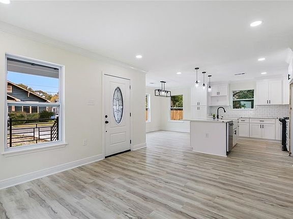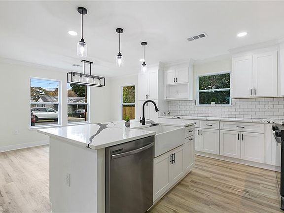Welcome to this beautifully renovated 3-bedroom, 2-bathroom home that effortlessly combines modern elegance with functionality. Every corner of this property has been thoughtfully updated to ensure a comfortable and stylish living experience. The interior boasts contemporary finishes, including sleek quartz countertops, exquisite marble tiling, and durable vinyl flooring throughout. This home is essentially brand new with updates to the roof, electrical system, plumbing, foundation, and the addition of a tankless hot water heater, driveways, and spray foam insulation in the attic and underneath the home. The primary suite is a true retreat, featuring a custom walk-in closet and a luxurious ensuite bathroom equipped with double vanities and stunning tile work. Both bathrooms reflect a sophisticated design with modern fixtures and marble tile flooring. Step outside to enjoy the spacious front and back porches, or entertain in the expansive backyard with convenient rear yard access and an extra concrete pad. Located in an X Flood Zone, this home offers peace of mind and an inviting space for both relaxation and entertaining.