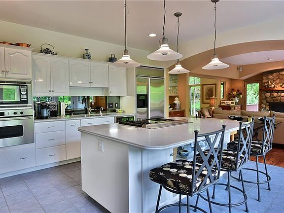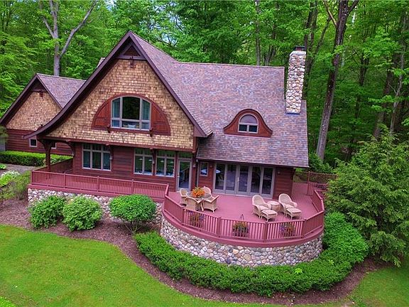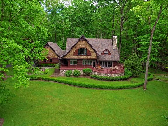 Treat yourself to a life of luxury with this sprawling private estate, nestled deeply into a wooded lot. As the trees clear, take in the awesome presence of this Craftsman styled build, complete with tall, sweeping peaks, redwood and cedar shake exterior, tied together with hand laid cobblestone and a huge front deck that overlooks the nearby creek. A four-car heated garage awaits around the corner. Inside, finished floors begin with a sun filled foyer at the carpeted staircase landing. Handsome hardwood floors lead you to separate formal and eat-in casual dining areas that wrap the living room and kitchen. The kitchen itself basks in natural light from the window lined walls. High gloss white cabinets race below the formed Corian countertops and large central island as high end stainless appliances glisten below the hanging lights. A decadent half bath, office and laundry complete the first floor. Upstairs, a trio of bespoke bedrooms each showcase stunning private bathrooms. The master bedroom suite overlooks the front yard with its arched window and includes his and her walk in closets an exquisite private master bath with whirlpool tub, oversized stalled shower and ornate vanity. There is a second master suite with walk in closet double sinks and a whirlpool tub. The basement level includes both a cinema great room, glass windowed gym and bespoke wine cellar. Beautiful decks surround this magnificent home. This home was purchased in foreclosure and completely renovated.