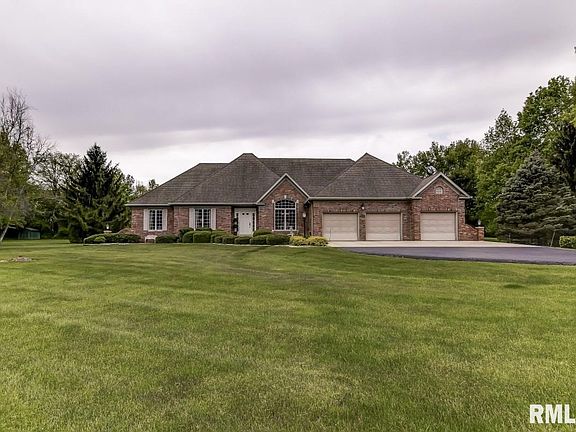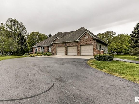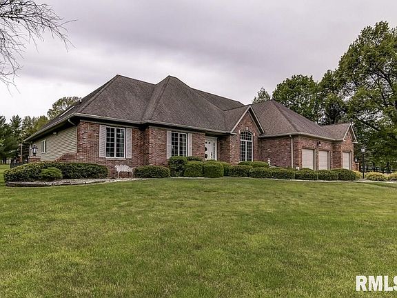 Almost 3 acres on Historic Lincoln Trail partially fenced. Custom built with 3,000+ sq. ft. on main floor & partially finished lower level w/family room(has kitchenette off family), desk area, 1/2 bath and storage. 3 car door opening to attached garage with extra 4th car or storage space. Andersen windows throughout provide lots of natural daylight. Foyer, dining room, kitchen w/Hearth room (has fireplace). Quartz countertops on island that seats 4-6 people opens to hearth room w/bookcases. 3 fireplaces. Each room accented with timeless crown molding. Main floor laundry. Very open and light. 3 bedroom home. Master bath has jetted tub, huge vanity, tiled floors, large walk-in closet with a sunroom off master bedroom. Stair to lower level from garage and interior of house. Generator, covered patio. Circle drive provides lots of off street parking.