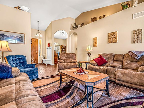 Very convenient location in North Grand Junction, close to St Mary's Hospital, doctors, Colorado Mesa University campus, I-70 and shopping. Very comfortable home updated with engineered wood flooring, upgraded carpet in bedrooms, custom interior paint, exterior stucco repainted also. Nicely landscaped with easily maintained yards, large patio 32x18 with gazebo and partially covered. Huge kitchen with Hickory cabinets, lots of counter space, breakfast bar, and dinette, large pantry, formal dining currently used as office. Spacious living room with 14 ft vaulted ceilings, large Owners Suite with 5 piece bath plus a large walk-in closet. Pressurized irrigation with sprinkler system. RV Parking is a plus!