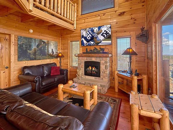 The name says it all...Million Dollar View. Located in the prestigious Preserve Resort...Million Dollar View has been strategically laid out and constructed so the view from any of the 3 stories of glass allows you to fully capture the Great Smoky Mountains. Truly breathtaking! Million Dollar View has 2 bedrooms and 3 full bathrooms and comes fully furnished. This 3 level log cabin sleeps 10 people and is loaded with 3 Large HD Flat Screen TVs, Pool Table, Foosball, Air Hockey and a 60 Game Arcade Game! The Preserve Resort amenities include spa, fitness center with steam room and sauna, outdoor pool and hot tub with a huge pavilion with a magnificent stone fireplace. Located just 15 minutes from Pigeon Forge this cabin is a must see. Cabin Layout: Main level: the main level enters through the fully equipped stainless steel kitchen into the living room. The living room features a new 65" Large Flat Screen LED TV with sound bar, electric fireplace, and large windows for enjoying the spectacular views. Step out on the private deck and take in the incredible Smoky Mountain Views. This level features a King-size bedroom with a new 65" LED TV, and full bathroom. Upstairs- In the upstairs loft area you will find another King-size bed, 65" TV, futon bed, and full bathroom with jacuzzi tub. Also in the loft is an additional crows nest with 2 futon mattresses perfect for kids. On this level you will also find another deck with a relaxing hot tub overlooking the mountains. Lower level: The lower level has an additional den area with a set of twin bunk beds and a Large HD Flat Screen TV with cable service and Netflix capability, blu-ray player, sleeper sofa, pool table, air hockey, foosball, 60-game arcade game, a full bathroom, as well as another deck for enjoying the view.