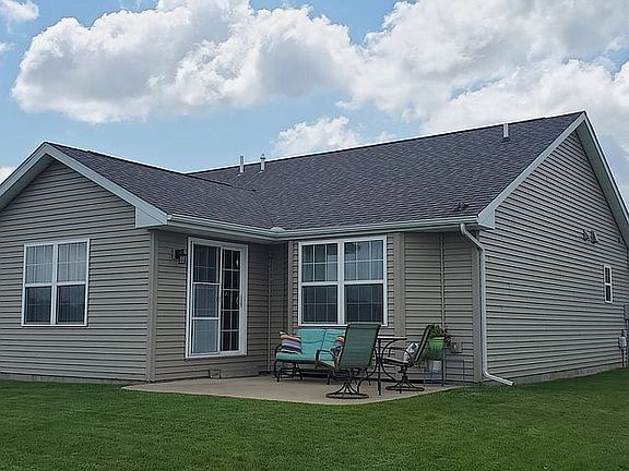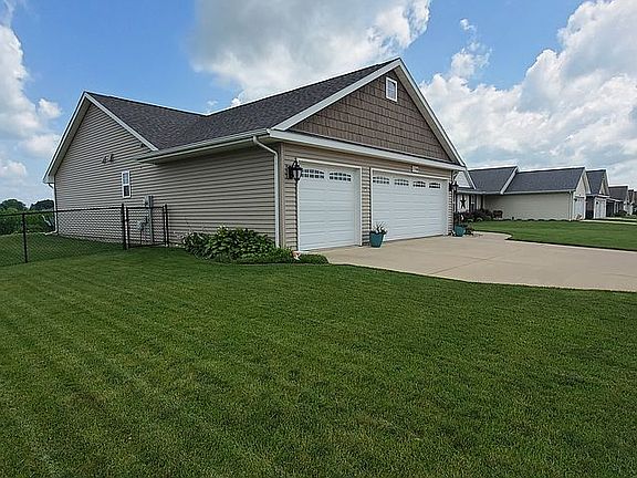 This is a stunning 3 bedroom / 2 bath open floor plan home built in 2014 with 1,948 square foot living space. This home features a split bedroom floor plan with large Master En-suite which boasts a master bath with doubles sinks and 6’ tub/shower with dual shower heads and a large walk in closet. Two guest bedrooms with a guest bath are located on the other side of home. The 3 Car garage with upgraded epoxy floor leads into the mud room/laundry room with a wall of storage, washer, dryer and utility sink. Upgrades were done in this kitchen with Cabinet Land Shaker cabinets, quality quartz countertops, under mount stainless steel double sink, a beautiful tile backsplash. Also boasts a corner pantry with extra storage and shelves galore. All Fingerprint Resistant Slate Stainless Steel GE Appliances are included. The open floor plan showcases the kitchen, a large 4-Season room, the dining room and living room with too many architectural touches to list – just look at the pictures!! This home has a mix of engineered hard wood flooring, neutral carpet and porcelain tile. All this sits on an oversized corner lot with a large, well-maintained fenced-in yard with a semi-private patio overlooking spacious farmland!