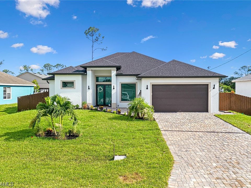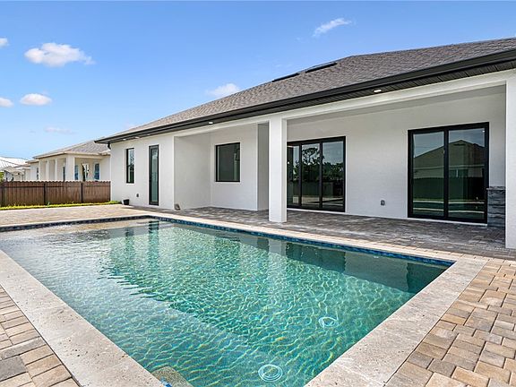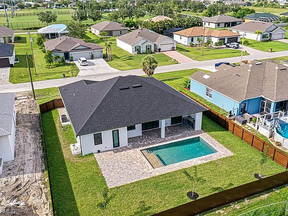 Experience New Construction. Custom Upgraded 3+Den 3 bath 2 car garage Fenced Pool Home. Highly desired area of SW Florida. 24x48 Porcelain Tile floors throughout. Tray/Volume Ceilings. Modern Lighting, Open concept Living/Kitchen SS Appliances, Custom Cabinets Glass Uppers undermount lighting. Washer/Dryer. 10ft Island beautiful Granite. Tiled Wet Bar/Coffee Bar Wine Fridge & Ice Maker. Large Bedrooms walk in closets & Custom shelving. Guest and Pool Bath Seamless Glass doors and upgraded tile. 8 ft Interior shaker styled upgraded doors. Ceiling fans in all rooms. Primary has large closets and walk around shower. 2 rain heads and wands, Bench and Niche with Natural lighting. Sliders to your Large pavered undertruss lanai with Summer Kitchen and extended paver sundeck. Pebble Finish Salt pool-Sandlike look Sunshelf with Umbrella holder. LOVE your outdoor Living space! Epoxy garage floor, upgraded custom landscaping and Lighting! Pavered entryway and driveway. Fenced with Sprinkler System. Floratam Sod, Gutters. Pre-wired cable in all rooms. Impact Sliders, windows- Double doors. Located minutes to Schools, Park-Pickle Ball-Tennis, Library, Shopping and Restaurants! Call this HOME!