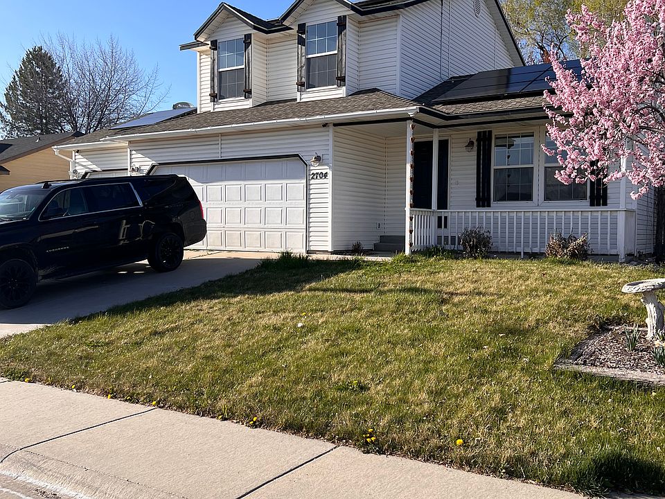 Freshly painted home interior, new carpet on stairs, new vanity and toilet in master bathroom. Large backyard with established apple tree and blackberry bush. Backyard fire pit. Established plum tree in the front yard, blooming variety of flowers. Solar panels and energy efficient light bulbs installed. Remodeled pantry area includes a large sliding barn style pantry door. House is 3 bed, 2.5 bath. 15 minutes from the freeway, kuna or downtown Nampa. Close to multiple different school. Renter pays all utilities (water/sewer/trash, gas, and electric) Owner pays for solar which reduces renters electric bill. Yard maintenance and city code compliance is the responsibility of the renter. Renter may have up to 3 pets. $250 non refundable pet deposit per pet. No smoking! Lease duration is negotiable. 12 month minimum, will consider month to month after initial 12 months.