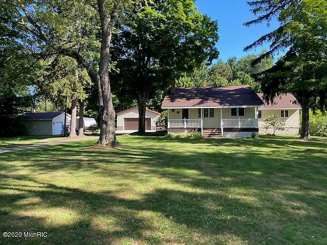 The finished basement provides family room, lots of storage, laundry, utility room with 2017 high energy Trane furnace, along with a wood furnace. Heat this home with wood and/or propane! Relax and enjoy the front porch or all your family and friends on the 54' back deck for a barbeque! The backyard is an outdoor paradise with campfire pit, 2 gardens, and more than 15 acres! Many trophies have come off this wooded land! This yard has beautiful landscaping with multiple impressive outbuildings. A high-quality pole barn with concrete floor was just recently constructed in 2019. This 26'x32' pole barn has 10' ceilings, an 18' door, workbench, metal roof and underground electrical. The 23'x23' workshop/garage has two newer automatic garage doors along with underground electrical. The rusticly attractive, movable 8'x20' metal roof wood shed has a sliding barn door. The fourth out building is brick, and has water going to it and a metal roof and measures 24'x13'!