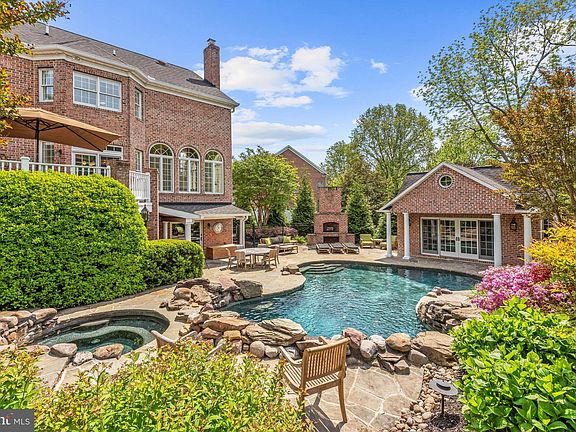 Impeccable all brick custom home, featured on HGTV, and showcased in Style Baltimore, Chesapeake Homes, and Chesapeake Life magazines! Sparing no expense, this home boasts a spectacular outdoor oasis highlighting a Pebble Tec saltwater pool with waterfalls, a self-cleaning system, a hot tub; an outdoor custom bar with a gas grill, fireplace, pool house with a full bath, exterior lighting, deck, gazebo, balcony, landscape lighting, and mature trees! Turf Valley’s Hialeah Golf Course just a short stroll away for the avid golf enthusiast. Countless updates include: stunning primary bath renovation, upgraded gas line, HVAC, interior painting, decorative lighting, French drain system, whole house generator, pool heater, pool filtration system, pool pump, built-ins in the family room, custom closets, new carpeting, a customized, bedroom-level laundry room, built-in beds in two upper level bedrooms, tankless hot water heater and so much more! Inviting covered front porch welcomes you inside to find gorgeous hardwood floors on the main and upper levels, intricate molding, plantation shutters, soaring ceilings and an exceptional open floor plan! Sensational two-story family room graced with a floor to ceiling sunbathed windows and a brick accented fireplace. Prepare chef inspired meals in the custom kitchen offering modern elegance yet comfort and style with sleek granite counters, professional grade appliances, gas cooktop, center-island with seating, pantry, display cabinetry, pendant lighting, custom bar perfect for entertaining, and a casual dining area. A main level office with custom built-ins, powder room, laundry room, and an arrival center conclude the masterfully designed main level. Magnificent primary bedroom suite renovated with an oversized, walk-in closet highlighting a granite dressing island and custom organization and remarkable; newly renovated primary bath adorned with double vanities, standalone soaking tub, elegant lighting, an oversized glass enclosed shower with seating, accent wall, and a water closet. Three additional graciously sized bedrooms; two of which feature amazing built-in double queen bunk with full trundle and shelving, laundry room, and a dual entry bath conclude the upper level sleeping quarters. Continue downstairs to the truly impressive lower level emphasizing a massive recreation room, custom bar, media room, exercise room, full bath with a steam shower, additional storage, and walkout level access to your own outdoor paradise. Enjoy the embodiment of Maryland’s good life!