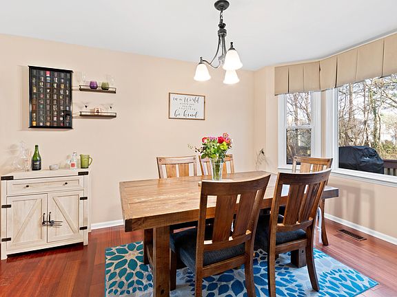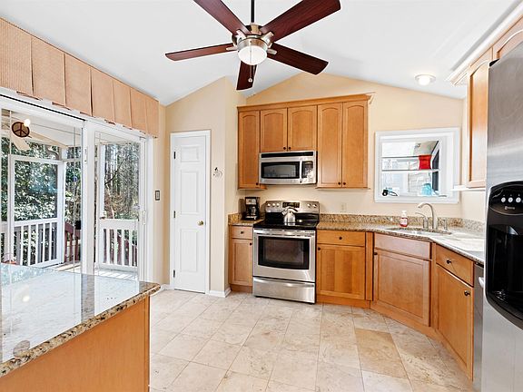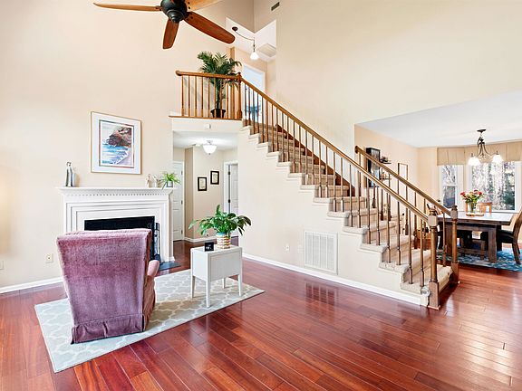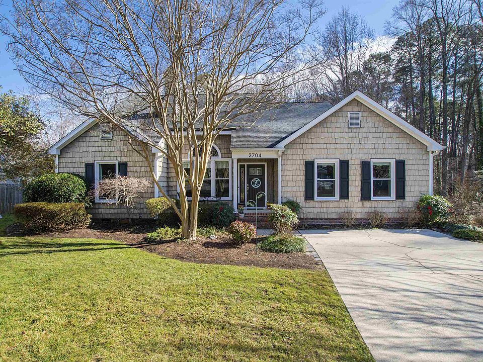 Step into this well maintained 4 bedroom/ 3 full bath home on cul de sac in desirable Southall! Minutes to dining, shopping, Downtown Raleigh/Walnut Creek/440/540. Rocking chair front porch greets you. Open living room with 20' ceilings & wood burning fireplace, separate dining area, and large family room/ den. Brazilian rosewood hardwoods throughout first floor. Kitchen features travertine tile floor, granite countertops, stainless appliances, and opens to screened porch and grilling deck perfect for outdoor entertaining. First floor primary bedroom with en suite bathroom, large shower, walk in closet, and first floor guest room with hall full bath. Upstairs features 2 beds, full bath, and walk in attic space. Laundry room with spacious storage area located on first floor. Fenced in backyard with raised bed gardens, storage shed that conveys, and room for a fire pit. Property backs up to natural area. Nearby neighborhood pool included in HOA fees. Google Fiber available!