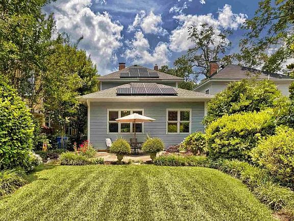Lovely 3 bedroom, 2 bath home with 10ft ceilings and hardwood floors throughout. Lots of charm and character. Home features a relaxing front porch with porch swing. Lots of living area with a living room, dining room, and spacious great room. Kitchen with custom cabinets, pantry, granite countertops, and cork flooring. Great room overlooks patio and private beautifully landscaped backyard. Shed with electricity. Solar panels provide reduced Summer electric bills. Walking distance to restaurants and shopping.
