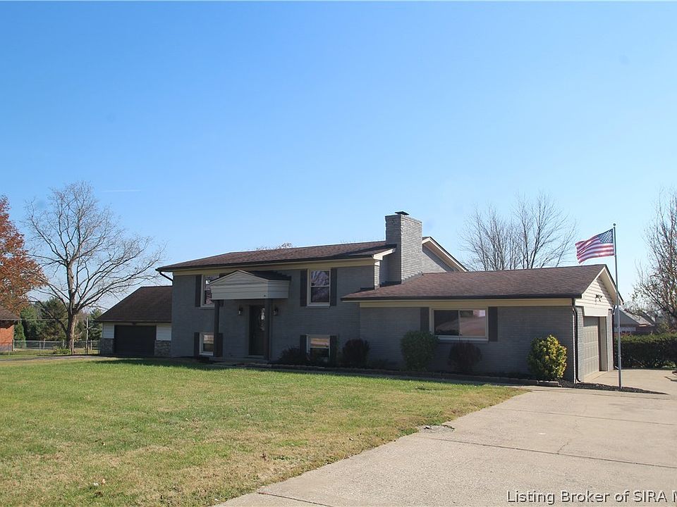 OPEN HOUSE SUNDAY 11/6/2022 2-5. This spacious 4 bedrooms home with family room and fireplace with gas logs has been freshly updated with interior doors, paint, counter tops, laminate/carpeting flooring, kitchen appliances and lighting. The nice size lot and the large deck offers so much as well as being in New Albany Floyd County Schools but has a Sellersburg mailing address. The attached oversized garage will hold more cars than 2 but only has a double door with a new garage door opener. Quick possession and owner would consider a trade for a much smaller home with large detached garage.