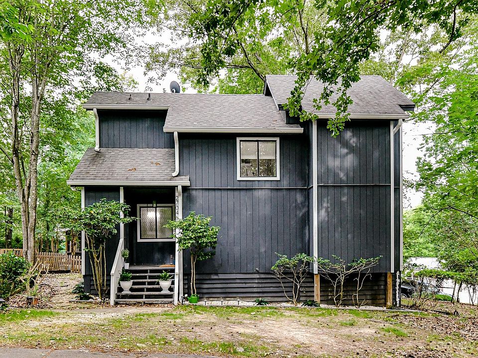 Charming, 2 Story, 2 Bedroom, 2 Bath Home located on a wooded, corner lot, in highly desirable Tega Cay! NO HOA! Open Plan! Kitchen offers plenty of counter (work) space & tons of cabinetry for storage! Cozy Dining Area just off Kitchen! Great Room features wood burning fireplace & deck access! Primary Bedroom is located on main level with Full Bath! Spacious, 2nd Primary on upper level with Full Bath! Newer Deck that expands the entire length of back of the home to relax & unwind! Large crawl space for additional storage. Storage room adjacent to front porch. Enjoy Tega Cay amenities: walking trails, fitness center, clubhouse, playground, tennis, Golf (Golf comes with an extra fee)!