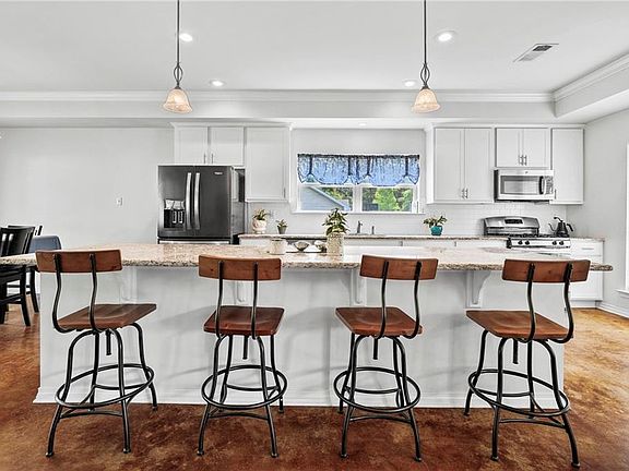 Welcome to your serene retreat on a spacious 1-acre lot! This meticulously maintained 3-bedroom, 2-bath home is nestled on a private drive just minutes from Bedico/Madisonville, offering a perfect blend of tranquility and convenience. The charming front porch beckons you inside through beautiful double doors, revealing a bright, open floor plan that seamlessly integrates the main living areas. The gourmet kitchen features a spacious island, stainless steel appliances, granite countertops, and a generous pantry. A wall of windows invites natural light and offers views of the lush green lawn, ideal for unwinding on the covered patio.