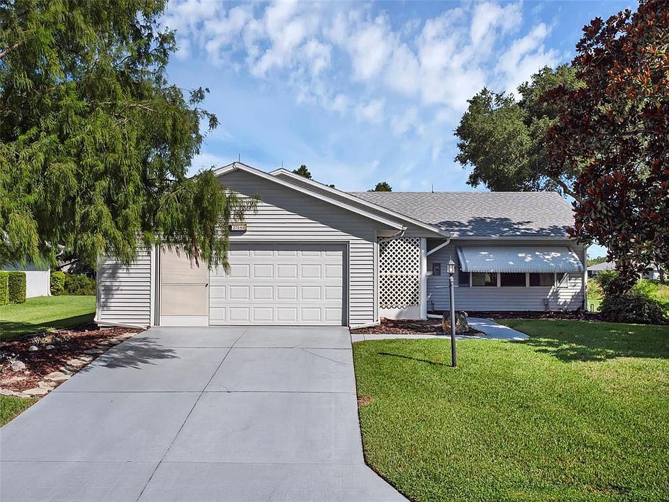 This 3-bedroom single family home is priced below market value for quick sale. Ideally situated on a private lot, over-looking green space, in the sought after 55 plus GATED community of Highland Lakes. Screen enclosed front entry opens to foyer with coat closet, laminate flooring, all appliances, including natural gas range, washer and natural gas dryer. Living room and dining combination, FOUR-SEASON SUNROOM (complete with Central heat and air), and open patio beyond. ROOF replaced in August 2022, HVAC 2021. Rain gutters, Rain Bird irrigation, pull-down attic stairs, garage door opener, garage sink/wash tub. Highland Lakes is a gated 55+ community situated in Central Florida just south of Leesburg & offers residents the following amenities: Recreational Clubhouse with two swimming pools; indoor (heated) & outdoor, a softball field complete with concession stand, an indoor arena with a stage for comm. events, complete kitchen, billiard/ping pong rm., 4 tennis courts (2 courts are lighted), 1 indoor tennis court, 8 lighted shuffle board courts, bocce ball courts, 2 outdoor and 4 indoor pickleball courts, 7 horseshoe pits, covered picnic pavilion with picnic tables & grills to barbeque, library, meeting/card room, exercise room/fitness, craft room, golf driving range, RV/boat storage (included in HOA) & has 260 spaces on a secured lot (fenced & lockable), a Craftsmen building/woodworking shop (homeowners can join the club for only $12 annually and use any/all tools available), there's also a Nature Trail within the community & seven lakes scattered throughout Highland Lakes; 4 are used by residents for catch & release fishing! Don't wait............. call now to schedule your private tour!