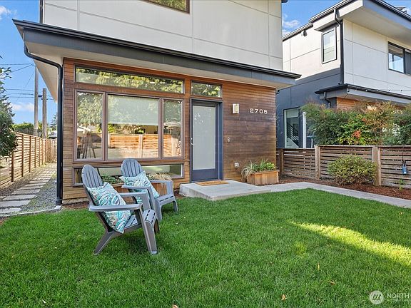 Welcome to the Adrmiral District of West Seattle! This modern home has it all. Nestled on a tree-lined street, enter the private fenced yard to find low maintenance space with room for pets. Massive windows and high ceilings let the light stream in no matter the weather. Open concept kitchen has spacious walk-in pantry, gas stove, newer refrigerator and Bosch dishwasher. 3 bedrooms on one floor including massive primary suite with walk-in closet and luxurious bath. Upstairs you'll love lounging in the family room with wetbar. Enjoy every sunset over the Olympics from the west-facing deck. Attached 2 car garage and easy access to Alki Beach, Downtown Seattle, and South Lake Union. Blocks from restaurants, coffee shops, Met Market.