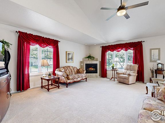 Located 1 block away from 2 golf courses, 2 blocks away from the Benson Sculpture Park and Lake Loveland! (5 houses away from Cattail Golf Course). This charming 2 bedroom, 2 baths, single unit patio style home is super clean, updated and perfect! Located on a corner lot in the heart of Loveland and close to everything! This home has been completely updated in 2017 and 2019! From the moment you drive up, you will feel at home!, Inside is a warm and inviting spacious living room with gas fireplace! Kitchen is open with new appliances, quartz countertops, granite sink, newer backsplash and accent tile! Dining room has amazing windows with so much natural light! Primary bedroom has vaulted ceilings, individual lighting above the bed and private door that opens to the back deck (great if you have a pet in the evening)! Primary ensuite has been updated with a great shower with a large seat! 2nd bedroom also has a vaulted ceiling! Main bath was completely remodeled in 2017.