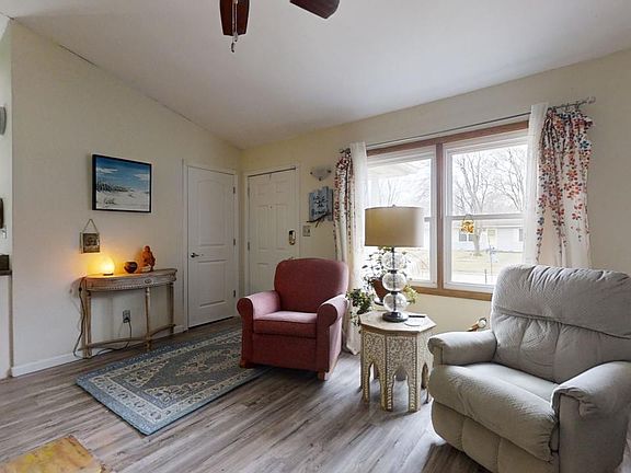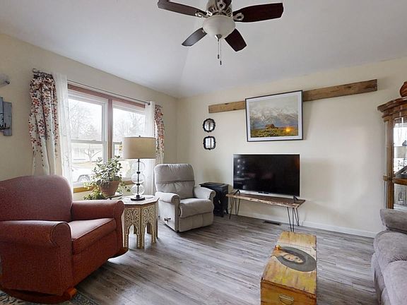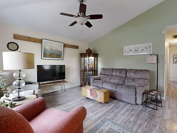 Don't miss this move in ready 3 bedroom ranch tucked away near shopping, schools and parks in Champaign! The charming exterior sets the tone for what's in store inside starting in the spacious living room highlighted by beautiful natural light, updated flooring and vaulted ceilings. Head into the eat-in kitchen to discover luxury vinyl tile flooring, a stylish tile back splash and rustic beamed ceiling. The primary bedroom boasts plenty of space as well as access to the hallway full bath with walk-in shower. Two additional guest bedrooms and the separate laundry room with bonus storage complete the tour. Relax on the back deck overlooking a fenced yard featuring mature landscaping. Recent updates include a/c, water heater and new doors. Schedule your private showing today!