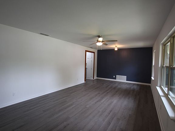 Enjoy two separate living spaces, one with a cozy brick fireplace, offering plenty of room to relax or entertain guests. The home features luxury vinyl plank flooring, updated lighting, and plumbing fixtures. Additionally, there are ceiling fans and a neutral color scheme throughout, as well as lots of natural light.
