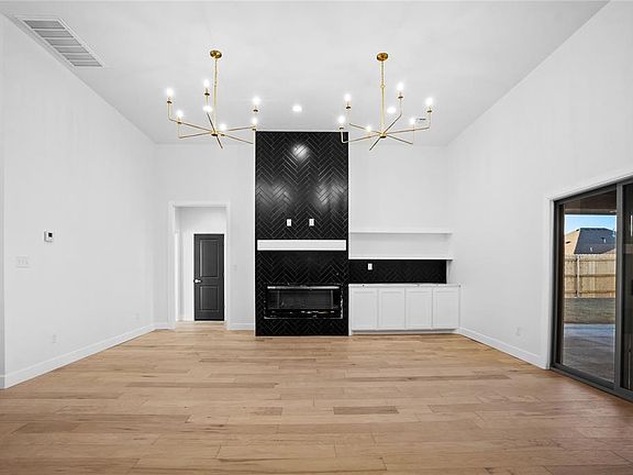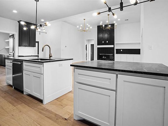 Gorgeous modern farmhouse designed home with high end finishes throughout. Incredible Kitchen with custom ebony cabinets include a double center island set off by striking quartz counters with ebony vein. Professional grade stainless appliances include gas range with convection baking. Under cabinet lighting illuminates the counter tops and the wood flooring. An entertainers dream Butler's Pantry off the Kitchen for massive amount of storage and prep space. Designer lighting & fans throughout. On demand tankless hot water. 12' ceiling in Living Rm set off by gas log fireplace. Bleached wood flooring throughout a large portion of the home. You are sure to love the restful Owner's Suite with raised ceiling, rich dark charcoal walls, large double walk-in closets with access to Laundry Rm. Double floating vanities w/ quartz counters. The wall of ebony herringbone laid tile is sure to set off the free-standing soaking tub with separate walk-in tile shower. All Bedrooms are nice sized with #2 featuring a private bath and #3 having double walk-in closets. Bonus: Home office space / craft room off garage service entrance w/ mud bench & storage. Large, covered patio with plenty of room for a swimming pool. Full sprinkler, sod, landscape & wood privacy fence included with home. 1 yr builder warranty.