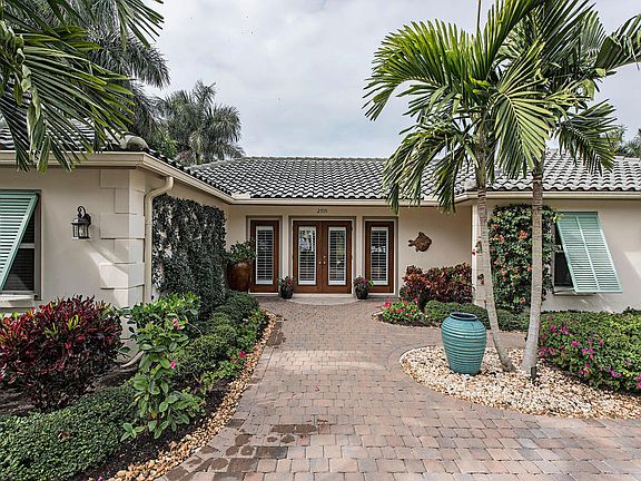 Curb appeal galore with this beautifully updated and maintained home. Ideally located in the picturesque neighborhood of The Moorings where new homes are selling for 3Million+, this classic 4 bedroom, 3 bath pool home has undergone a score of recent renovations. An addition enlarged the master bedroom, created a huge walk-in closet and a brand new master bath. The kitchen was reconfigured and opens to the great room separated by an island with bar-style seating and light colored granite. Guest rooms have new tile floor, new bathroom vanities and the pool bath features a walk in shower. The home has all new impact glass windows and was recently painted inside and out. Additional updates include new LED lighting, fabulous landscaping and exterior lighting, extended circular paver driveway, and colorful decorative shutters. The western facing back yard is fully fenced and includes a large covered lanai, a generous grass area and a good sized pool surrounded by a sunny paver deck. Homeowners here enjoy access to a private 2+acre beach park, a walk to The Moorings Country Club, and numerous shops and restaurants a very short distance away.