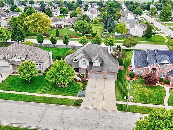 Fabulous location near restaurants, shopping, and medical offices in highly desired Cobblestone subdivision. 4 bed, 2 full bath and 2 half bath 2 story with in ground pool and lots of updates. 2024 All new baseboards installed on main level and brand new pool heater. 2023 Brand new kitchen w/white cabinetry on upper cabinets and navy blue on base cabinets, quartz countertops, new stainless steel appliances, garbage disposal, luxury vinyl plank flooring throughout main level, Bar/Drink Station with bar refrigerator, and new front door with side lights. 2021 New pool liner and main level furnace and A/C. Updated main floor 1/2 bath. Finished basement with potential 5th bedroom (no egress), 1/2 bath, music/game room, large family room w/wet bar and cabinetry. Water pressurized back up sump and radon mitigation system. Fenced yard. 3.5 car attached garage.