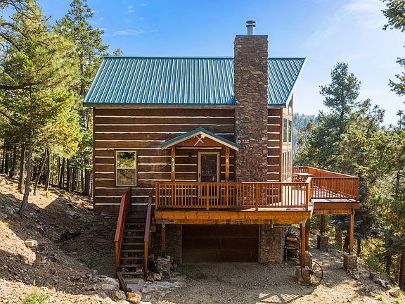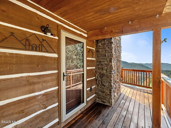 Custom built cabin with all the amenities you have been looking for PLUS million dollar views!! Welcome home in this newer built cabin with vaulted ceilings, gorgeous hardwood floors and just over 1,400 square feet of living space AND a 1 1/2 car garage. There are tons of windows that offer views of the surrounding landscape and bring in tons of natural mountain light - some of these windows have automatic blinds. A lovely open living room with wood stove - perfect to curl up and enjoy on those chilly days/evenings or use the central heat to stay warm and toasty. The living area opens nicely into the kitchen area that offers plenty of storage/cabinets, granite countertops and appliances. The primary bedroom is on the main floor and has its own private on-suite.