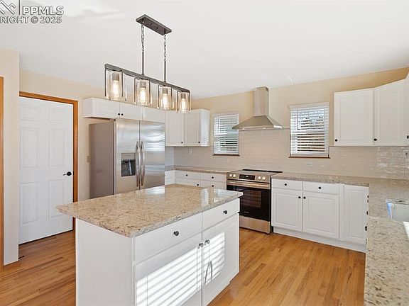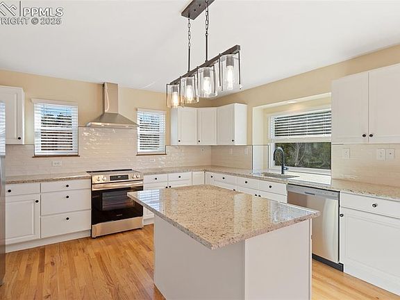 Step into this stunning, fully remodeled home nestled in the highly desirable Summerfield neighborhood with top-rated District 20 schools, neighborhood parks and walking trails, and exceptional location minutes from all area amenities - don't miss this fantastic opportunity! Every inch of this property has been thoughtfully updated to offer a modern, move-in-ready space with incredible features, amazing and spacious floorplan, and oversized lot. Inside, you'll find brand-new flooring, complemented by fresh interior paint that brightens every corner. The new lighting and hardware add a sleek and contemporary touch, while the remodeled kitchen steals the show with brand-new stainless steel appliances, sparkling new granite countertops, and stylish modern light fixtures. Enjoy meals in the sunny dining nook, which opens onto the patio—perfect for indoor-outdoor living. The main-level master suite is a luxurious retreat, boasting a brand-newly remodeled 5-piece bathroom with an oversized spa shower, a relaxing soaking tub, double vanity with brand new granite countertops, and a massive walk-in closet. Also on the main level is a versatile office space with elegant French doors, newly remodeled powder bath, and large laundry room with brand new flooring. Upstairs, you'll find three spacious secondary bedrooms and Pikes Peak views, and a beautifully remodeled full bath featuring a double vanity. Sitting on a huge partially fenced-in lot, this property offers plenty of outdoor space, including two sheds for ample storage—one with electricity, making it an ideal workshop or creative space. The unfinished basement offers further storage or room for expansion! This property combines modern style, functional design, and unbeatable convenience while the stunning mountain views from both the backyard and upper-level bedrooms are sure to captivate. Don’t miss your chance to make this beautifully updated property your forever home! Schedule your showing today!