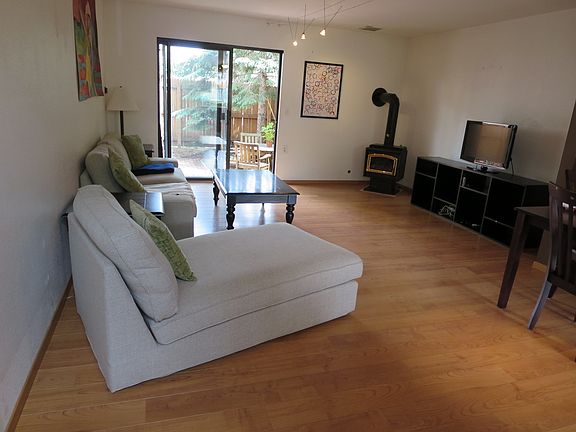 Willow Springs townhome with open floor plan, beautiful wood floors and lots of light. The third bedroom has been updated to an open spacious study. The upper level bath has slate floors & sky light. Big laundry and lots of room for storage, bikes and skis. Private back patio great for entertaining. Detached 200 SF garage + 2 assigned parking spaces. Downstairs bed and bath was rented for $750 as additional income. The numbers work; You won't be disappointed.