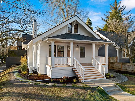 Classic charm and modern style combine in this fully renovated craftsman bungalow set on a corner lot in Grant Park. From the inviting front porch with gleaming fir to the thoughtful upgrades throughout, this home is designed to impress. The main level features a cozy living room which includes a wood-burning fireplace and built-ins, a spacious formal dining room with original box beam ceiling, and a chef’s kitchen with quartz countertops, new stainless appliances, and a gas cook top. A rare main floor primary suite and an additional bedroom/den with half bath provide flexible living options. Upstairs, you’ll find two bedrooms, a full bath, and a generous bonus room perfect for a play area, home office, or craft room, with potential to create a luxurious owner’s suite. The fully finished lower level adds even more living space, including two bedrooms with egress windows, a spacious family/media room, large laundry/utility room, and additional storage. Outside, enjoy a private backyard and the convenience of a detached garage. With all-new windows, doors, wiring, plumbing, and roof, this beautifully modernized craftsman is move-in ready. Whether entertaining or enjoying quiet moments, this home checks all the boxes. [Home Energy Score = 6. HES Report at https://rpt.greenbuildingregistry.com/hes/OR10234981]